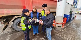 В Домодедово сотрудники Госавтоинспекции совместно с 7 батальоном полка ДПС южный и волонтёрами культуры проводят информационные ликбезы с водителями большегрузного транспорта