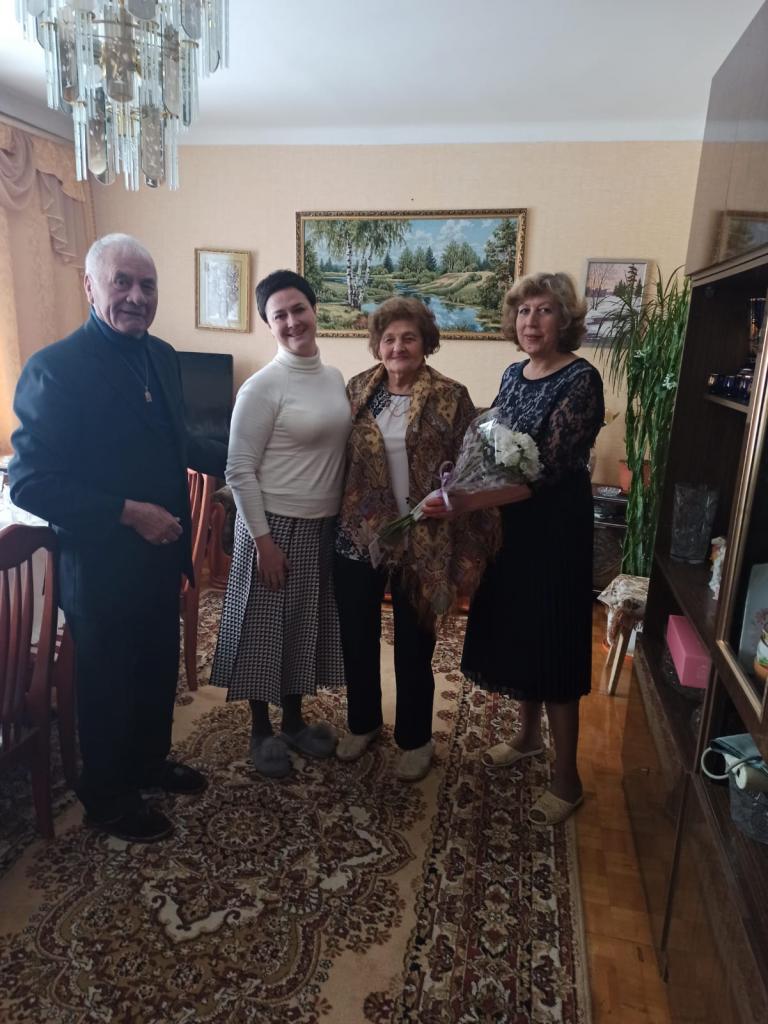 85-летний юбилей отметила жительница микрорайона Белые Столбы Валентина Федоровна Горчакова. Поздравила именинницу Начальник территориального отдела микрорайонов Белые Столбы и Барыбино Наталья Алексеевна Филина, она вручила подарок и поздравления от Губернатора Московской области А. Ю. Воробьева.