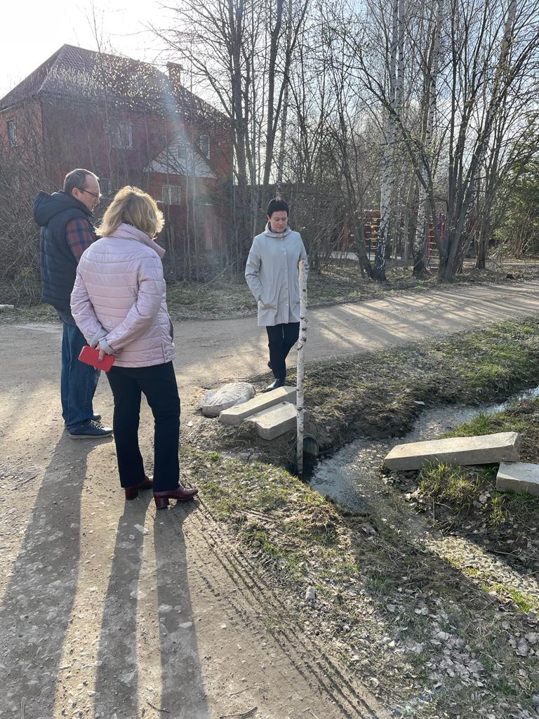 20.04.2022г. состоялся выезд начальника территориального отдела микрорайонов Белые Столбы и Барыбино Н.А. Филиной, заместителя начальника территориального отдела микрорайонов Барыбино и Белые Столбы Г.А.Рогозы и представителей подрядной организации ООО "Эластик" по вопросу организации водоотводных кюветов вдоль ул. Кирова (новая застройка), ул. Солнечная, ул. Шаховская, ул. Сиреневый бульвар.