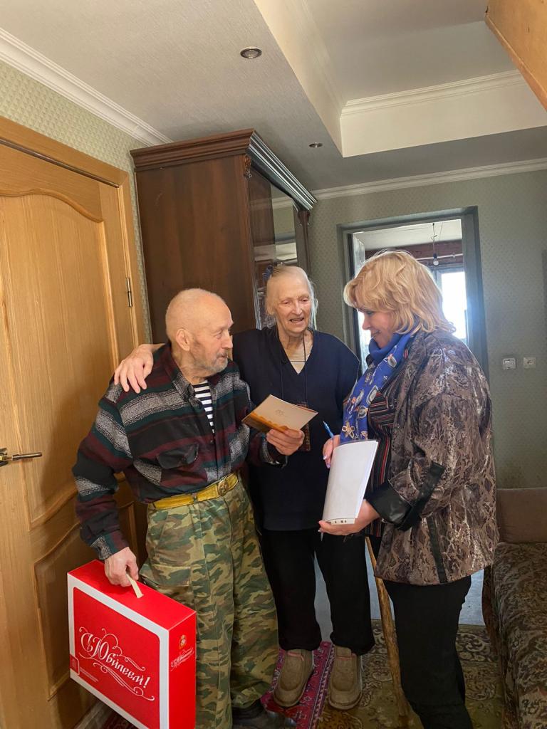 Житель микрорайона Барыбино Виктор Васильевич Ерохин принимал тёплые и нежные слова поздравлений. Ему исполнилось 85 лет. Вручила юбиляру поздравление и подарок от Губернатора Московской области Андрея Воробьёва заместитель начальника территориального отдела микрорайонов Белые Столбы и Барыбино Галина Анатольевна Рогоза.